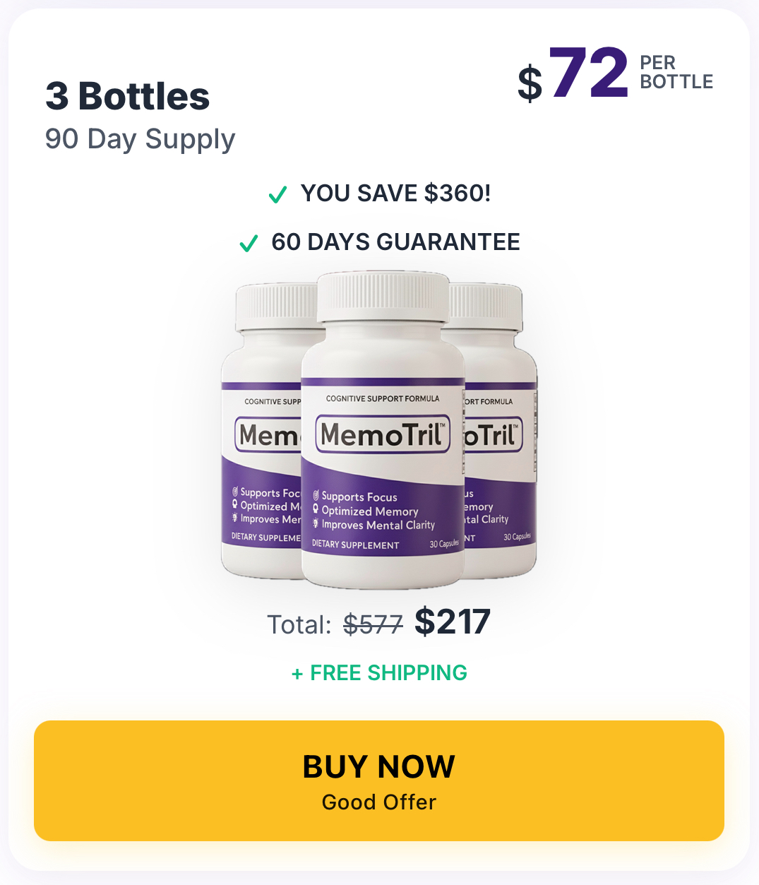 MemoTril is currently sold exclusively through its official website. Purchasing directly from the authorized source helps ensure you receive the genuine product and allows you to benefit from the official refund policy.